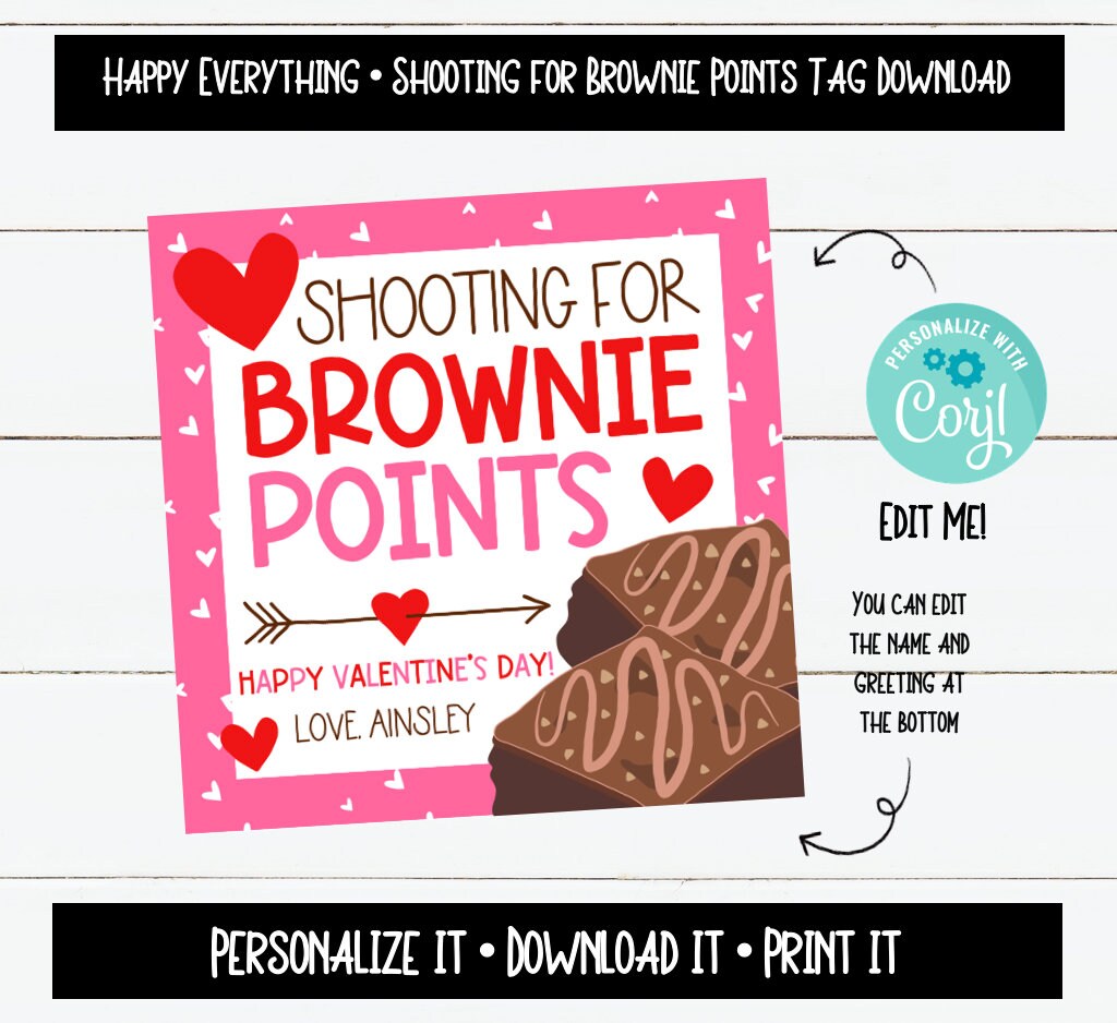 EDITABLE Shooting for Brownie Points Valentine Tag Etsy