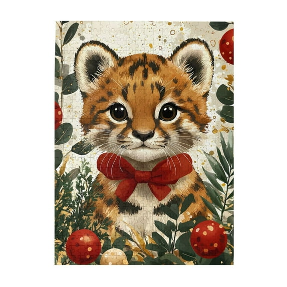 1000 Piece Wooden Jigsaw Puzzle for Adults Feline Cub Bow Foliage