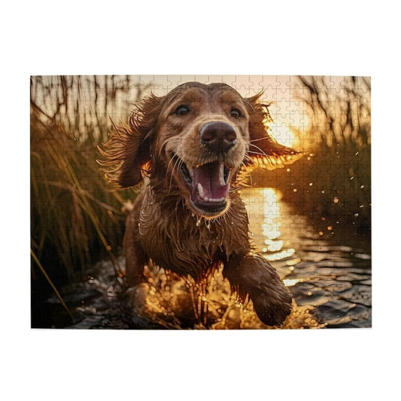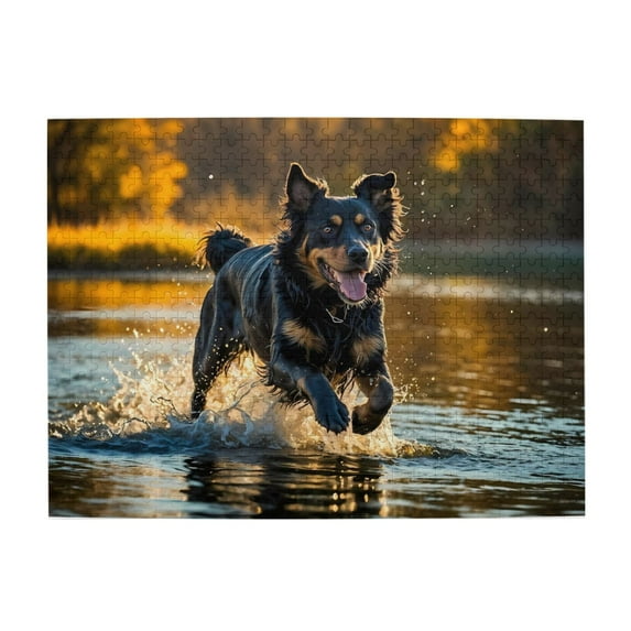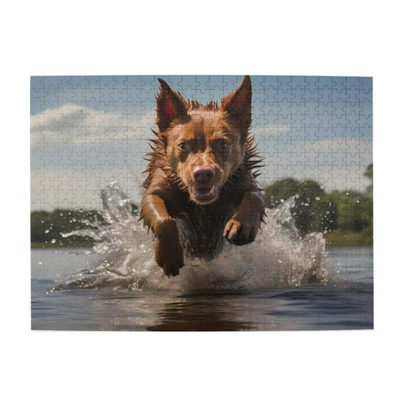 500 Piece Wooden Jigsaw Puzzle for Adults Dog Running Water Playful