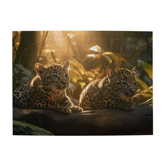 1000 Piece Wooden Jigsaw Puzzle for Adults Leopard Cubsss Sunlight