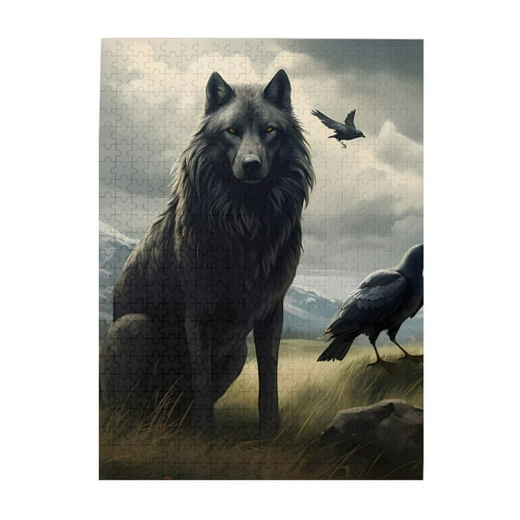 1000 Piece Wooden Jigsaw Puzzle for Adults Wolf Raven Mountain