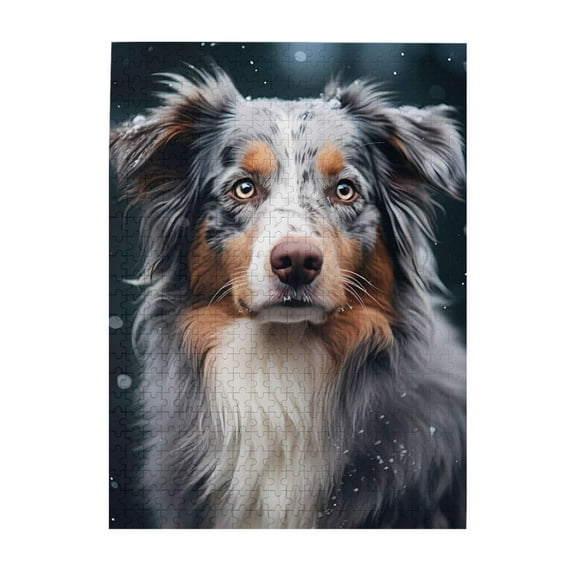 500 Piece Wooden Jigsaw Puzzle for Adults Australian Shepherd Winter