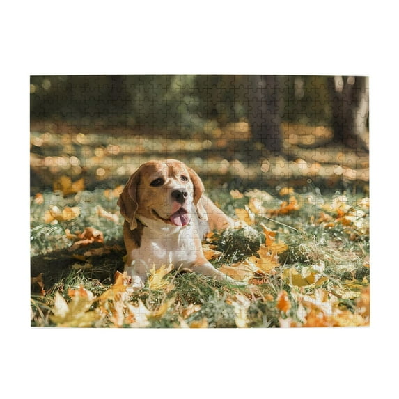 500 Piece Wooden Jigsaw Puzzle for Adults Beagle Dog Fall Leaves