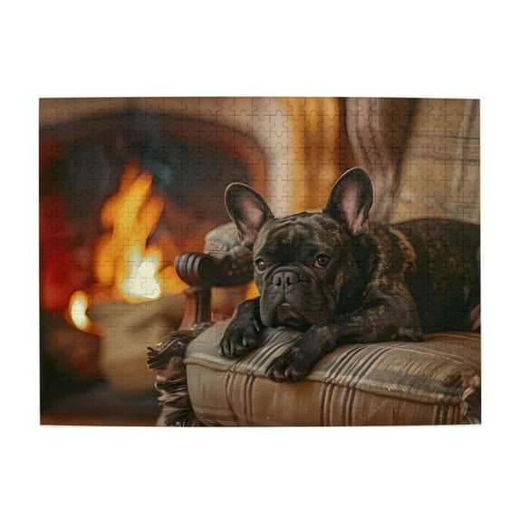 500 Piece Wooden Jigsaw Puzzle for Adults Bulldog Fireplace Chair