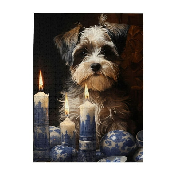 500 Piece Wooden Jigsaw Puzzle for Adults Dogs Portrait Candlelight
