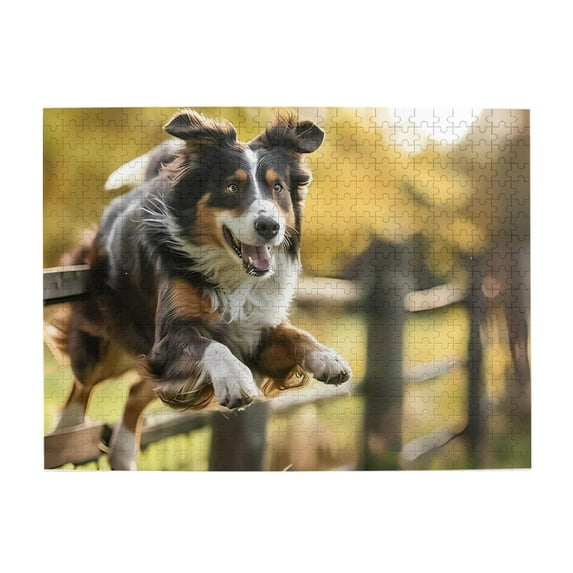 500 Piece Wooden Jigsaw Puzzle for Adults Dog Jumping Fence Outdoors