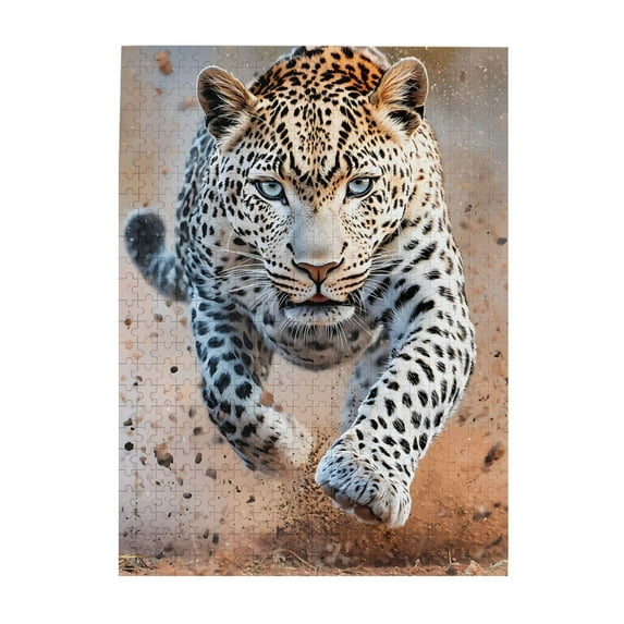 500 Piece Wooden Jigsaw Puzzle for Adults Leopard Charge Sprint