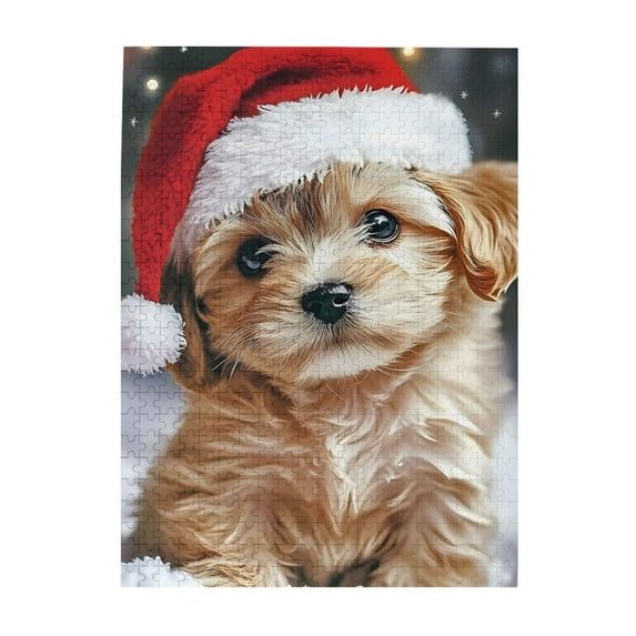 500 Piece Wooden Jigsaw Puzzle for Adults Puppy Santa Hat Christmas