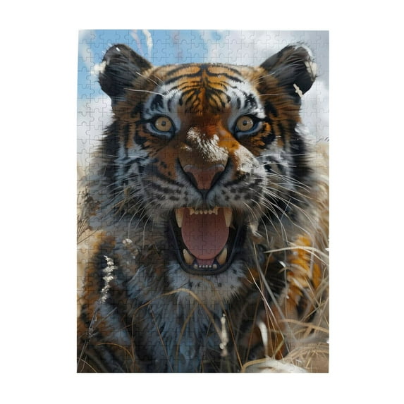 500 Piece Wooden Jigsaw Puzzle for Adults Roaring Tiger Wild Feline