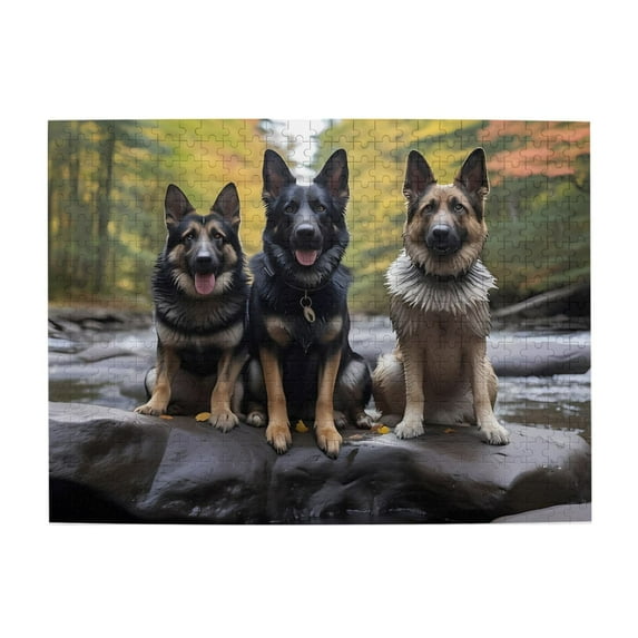 500 Piece Wooden Jigsaw Puzzle for Adults Three Dogs Forest River