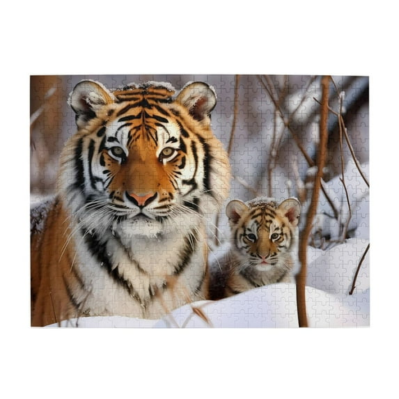 500 Piece Wooden Jigsaw Puzzle for Adults Tiger Cub Winter Snow