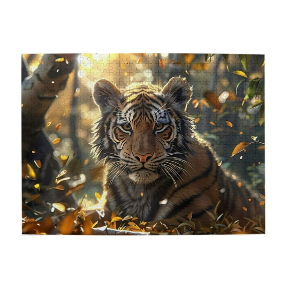 500 Piece Wooden Jigsaw Puzzle for Adults Tiger Forest Autumn Leaves