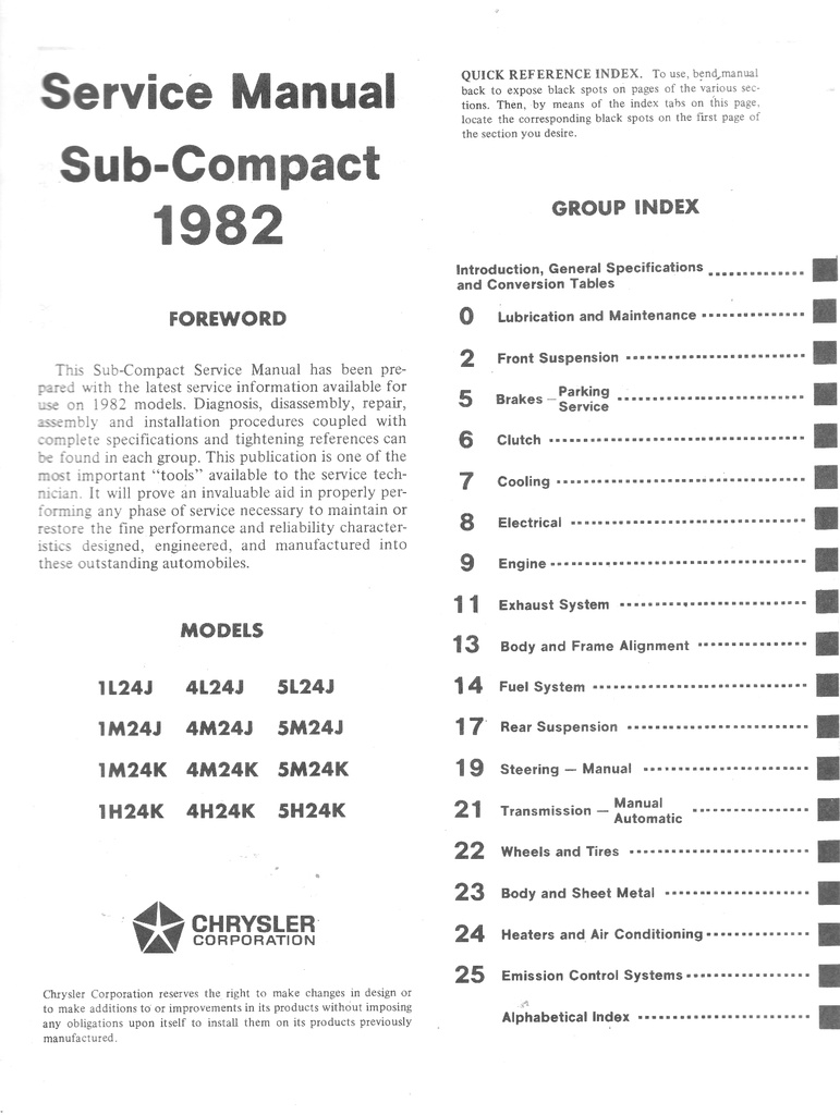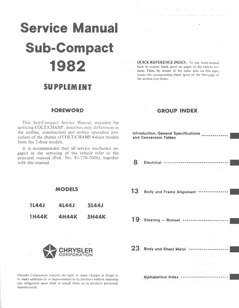 1982 Dodge/Plymouth Colt/Champ Service Manual Supplement