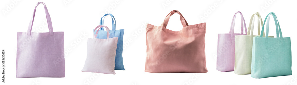 Pastel linen bag shopper mockup set collection on transparent cutout