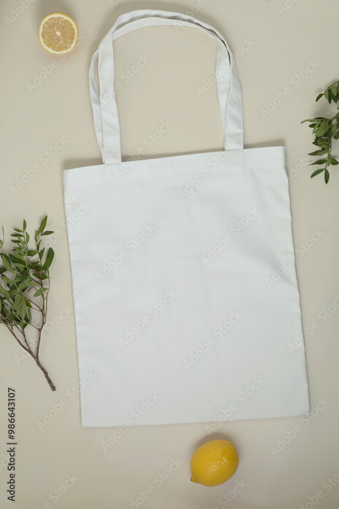 Blank Minimalist White Canvas Eco Cotton Tote Bag or Shopper Template