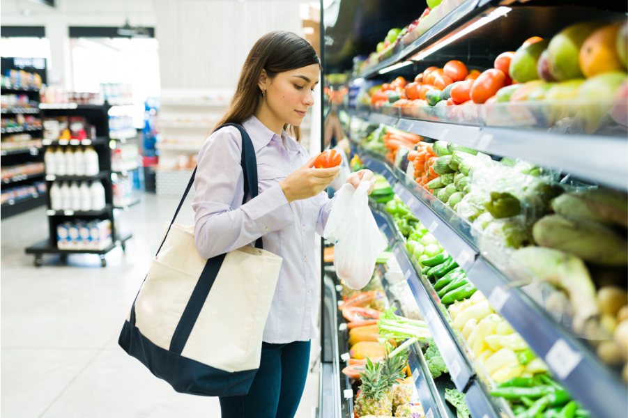 Premium Photo Woman Shopping for Groceries in Supermarket Aisle