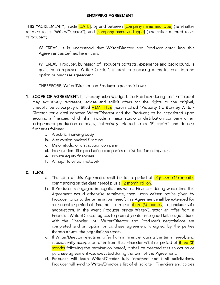 The Producer s Guide to the Shopping Agreement Wrapbook