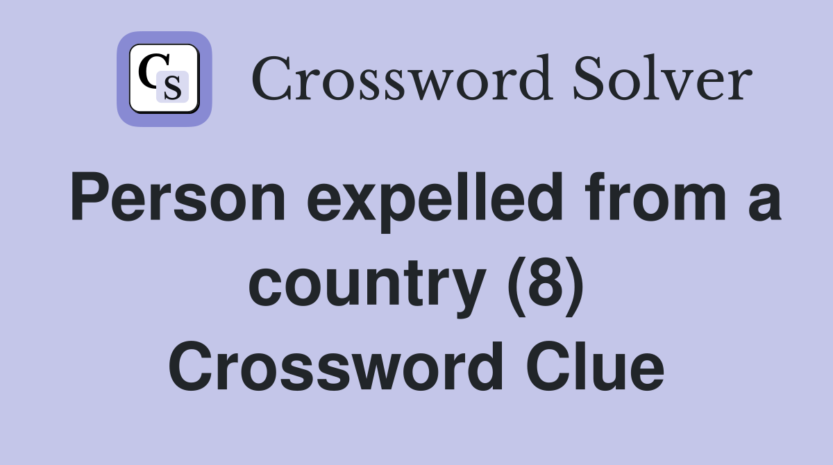 Person expelled from a country (8) Crossword Clue Answers Crossword