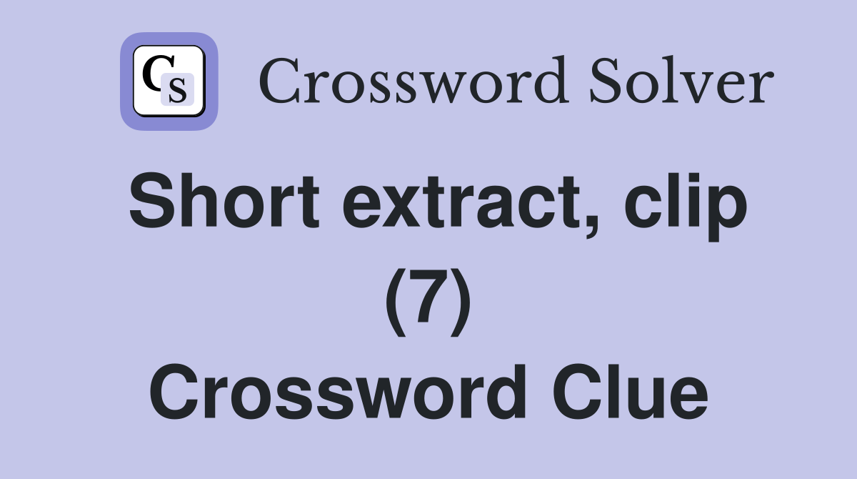 Short extract clip (7) Crossword Clue Answers Crossword Solver