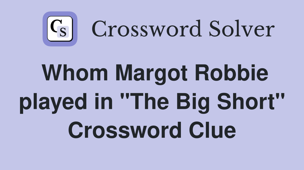 Whom Margot Robbie played in quot The Big Short quot Crossword Clue Answers