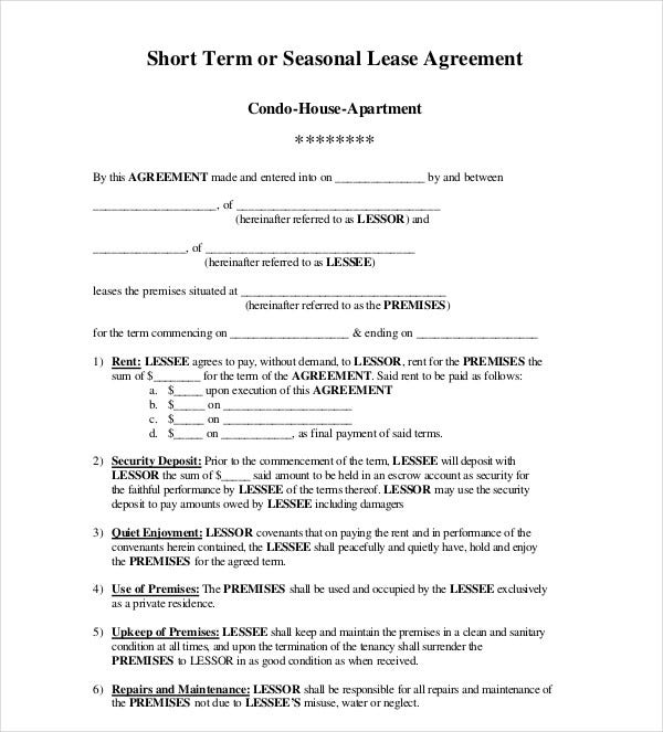 Here are some of the images for Short Lease Agreement Template that we found in our website database.