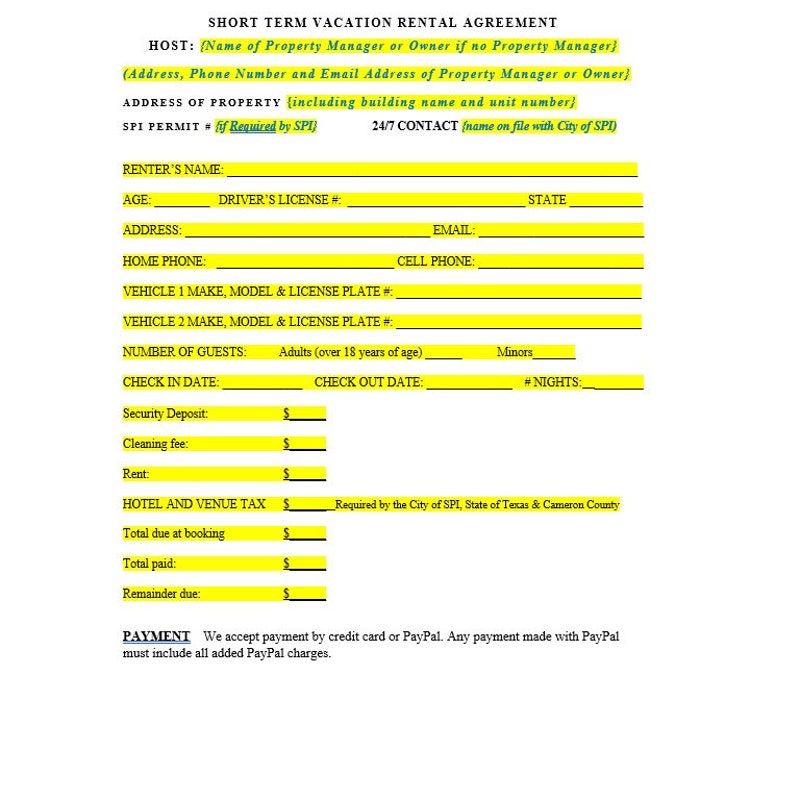 Short Term Rental Agreement Template Etsy