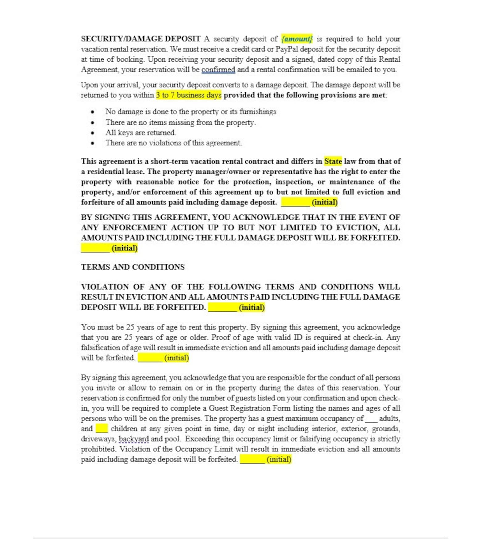 Short Term Rental Agreement Template Attorney Written Editable Inst