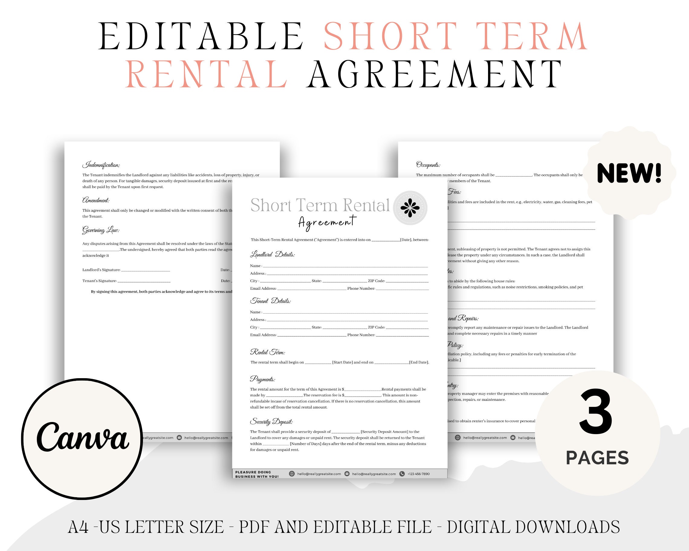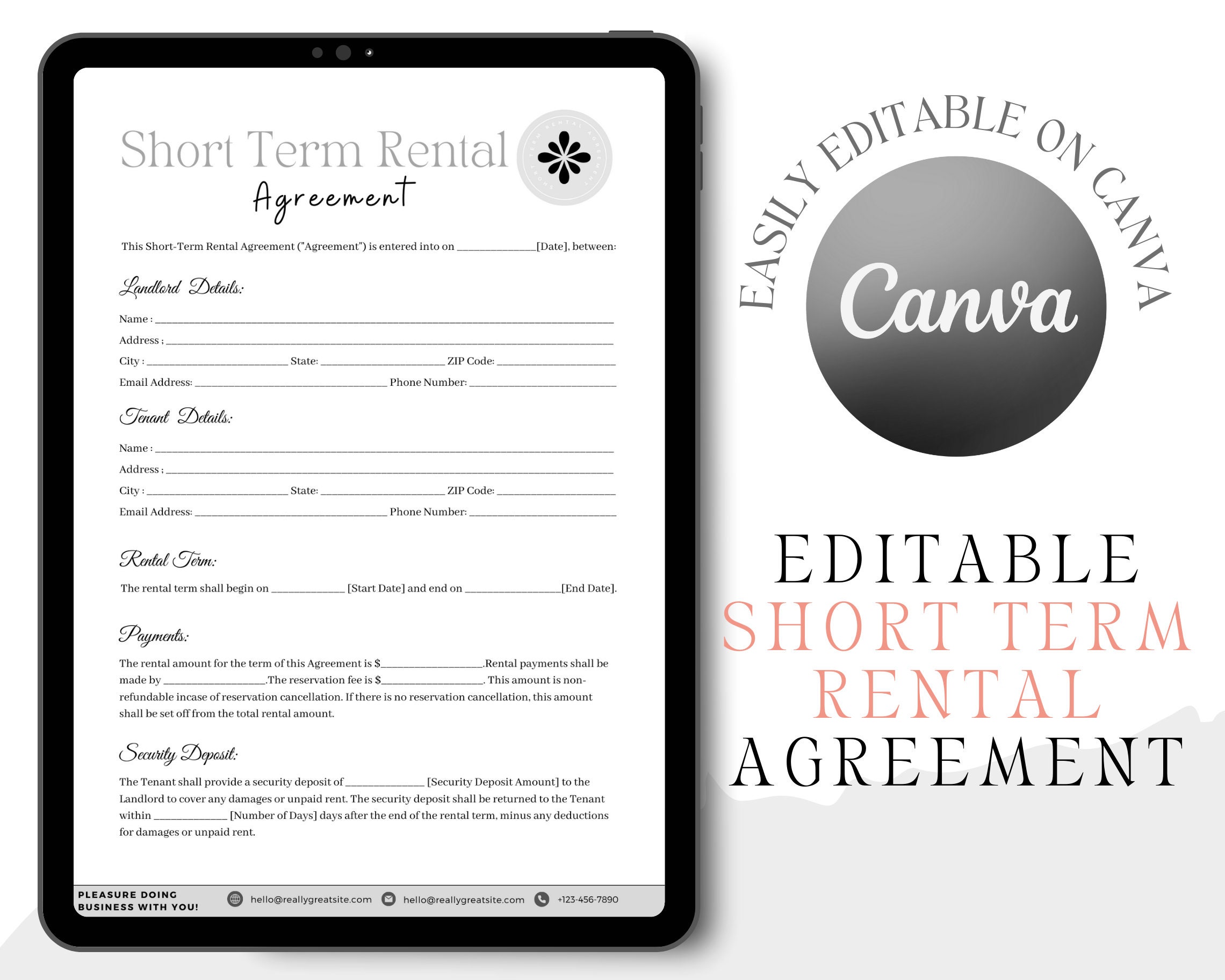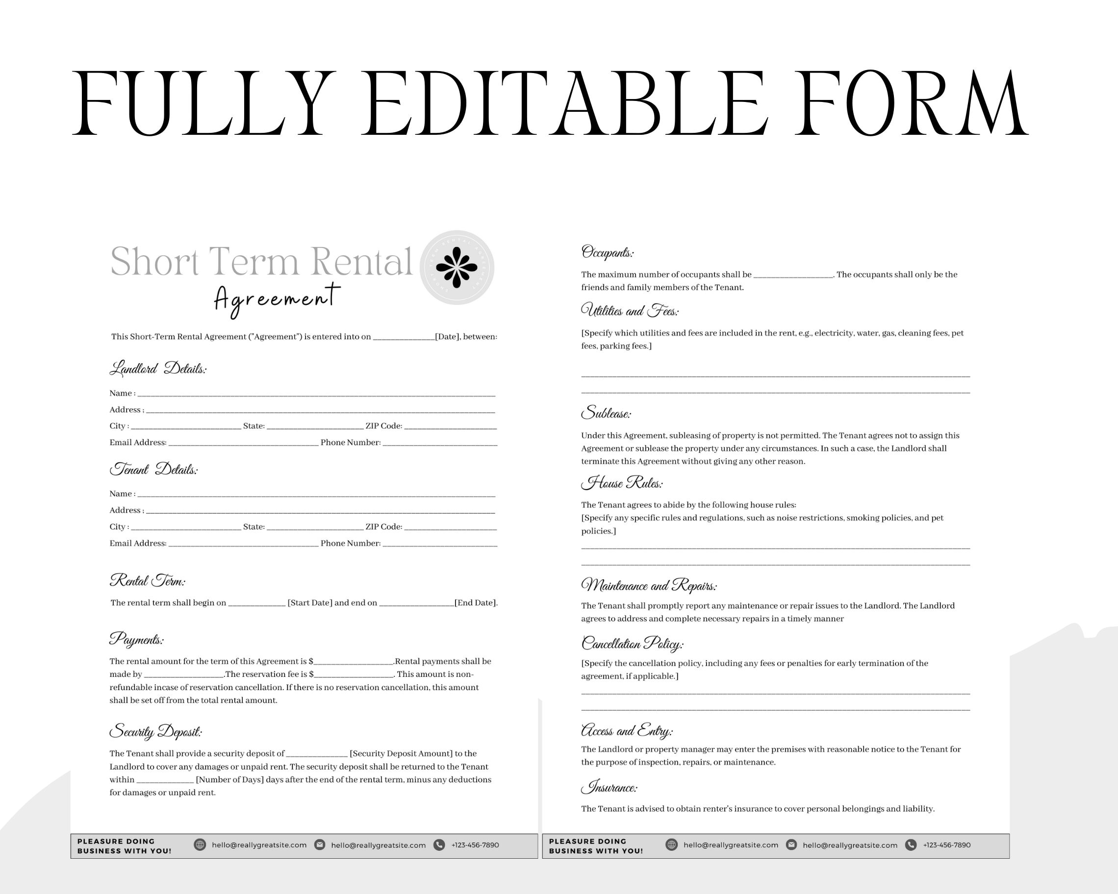 Short Term Rental Agreement Template Editable PDF Microsoft Word