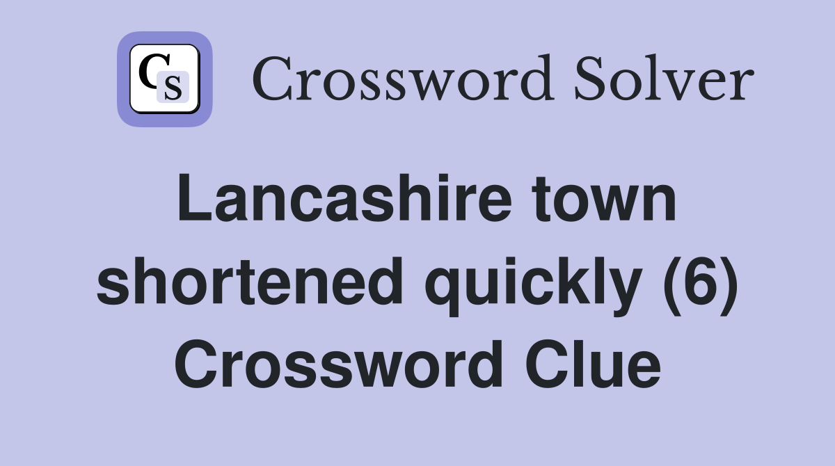 Lancashire town shortened quickly (6) Crossword Clue Answers