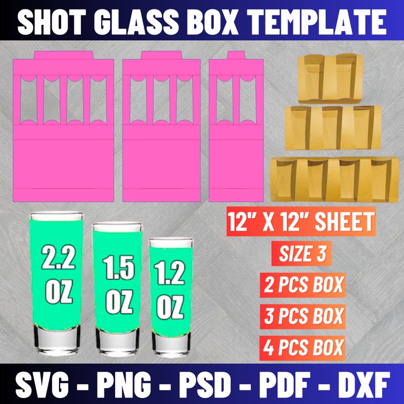 1 5 Oz and 1 2 Oz Shot Glass Box Template SVG Digital Download Etsy