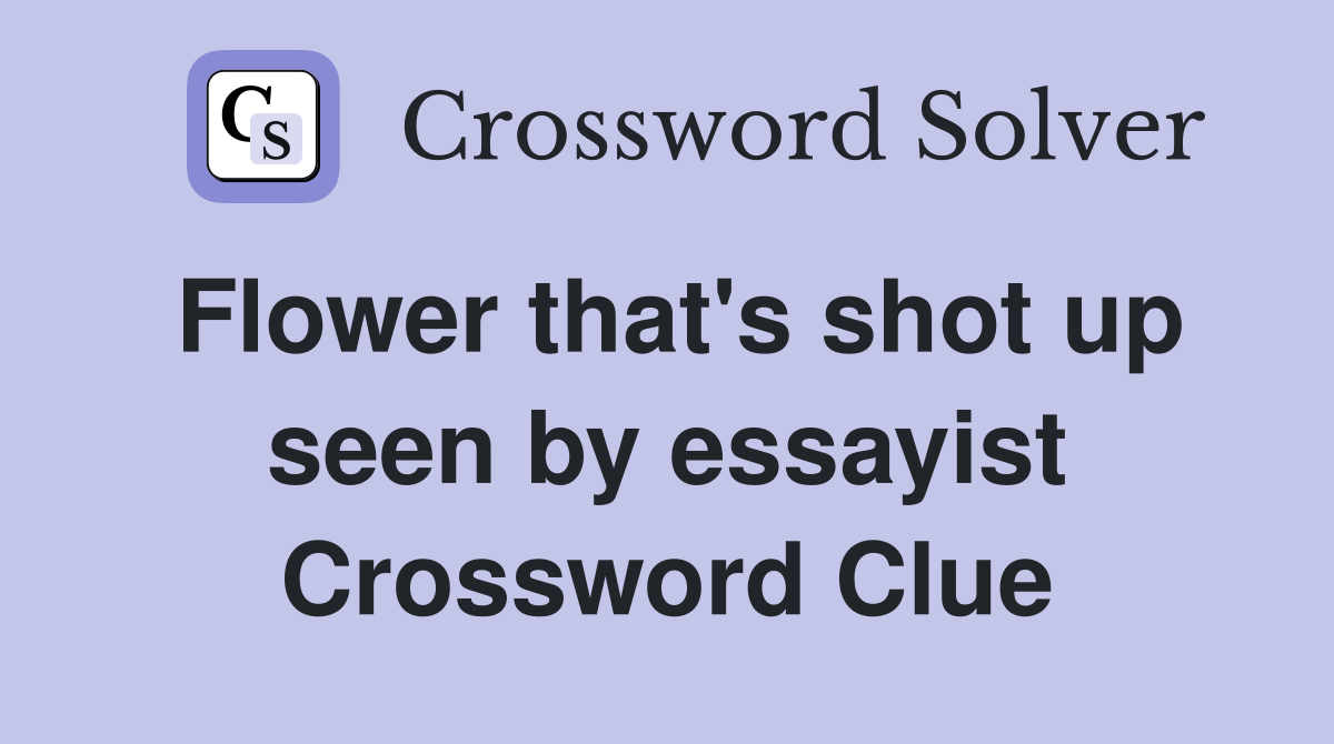 Flower that #39 s shot up seen by essayist Crossword Clue Answers
