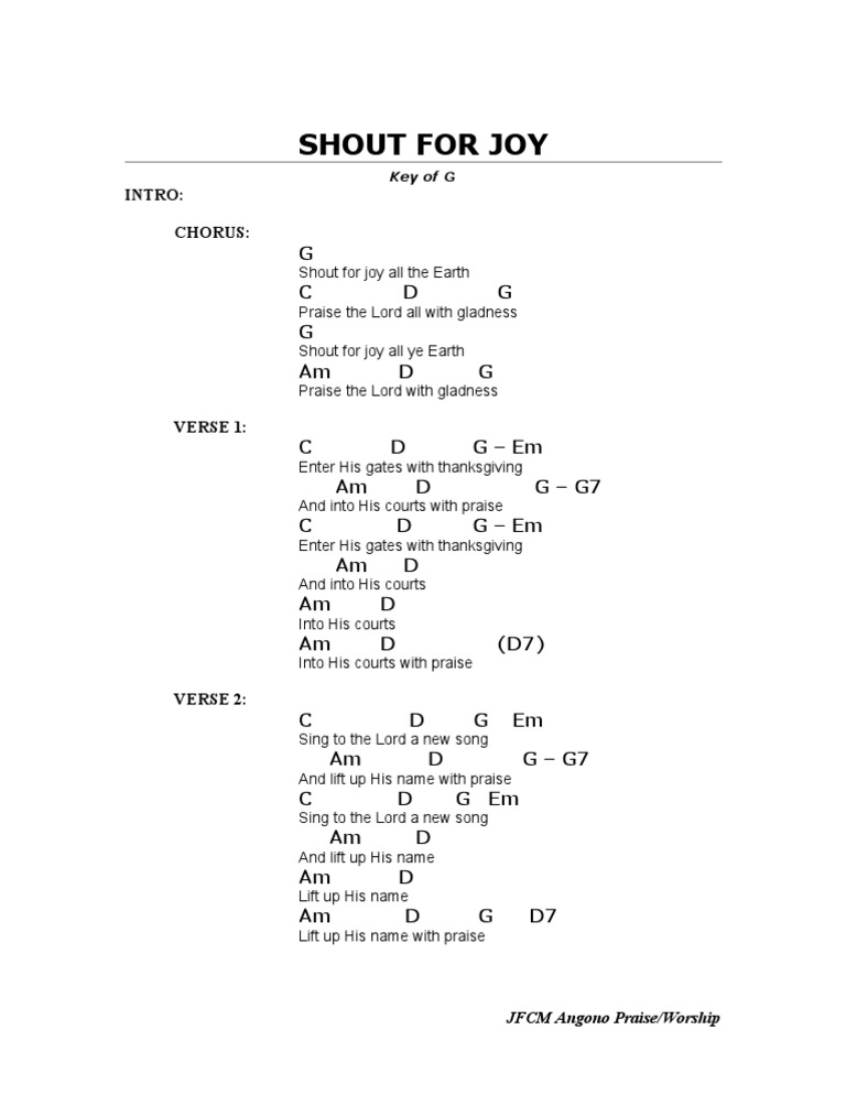 Christian Gospel Worship Song Lyrics with Chords Shout Shout For Joy