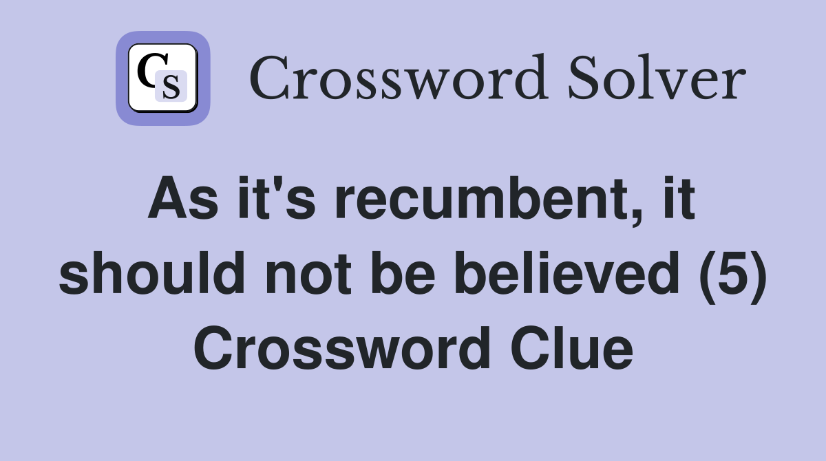 As it #39 s recumbent it should not be believed (5) Crossword Clue