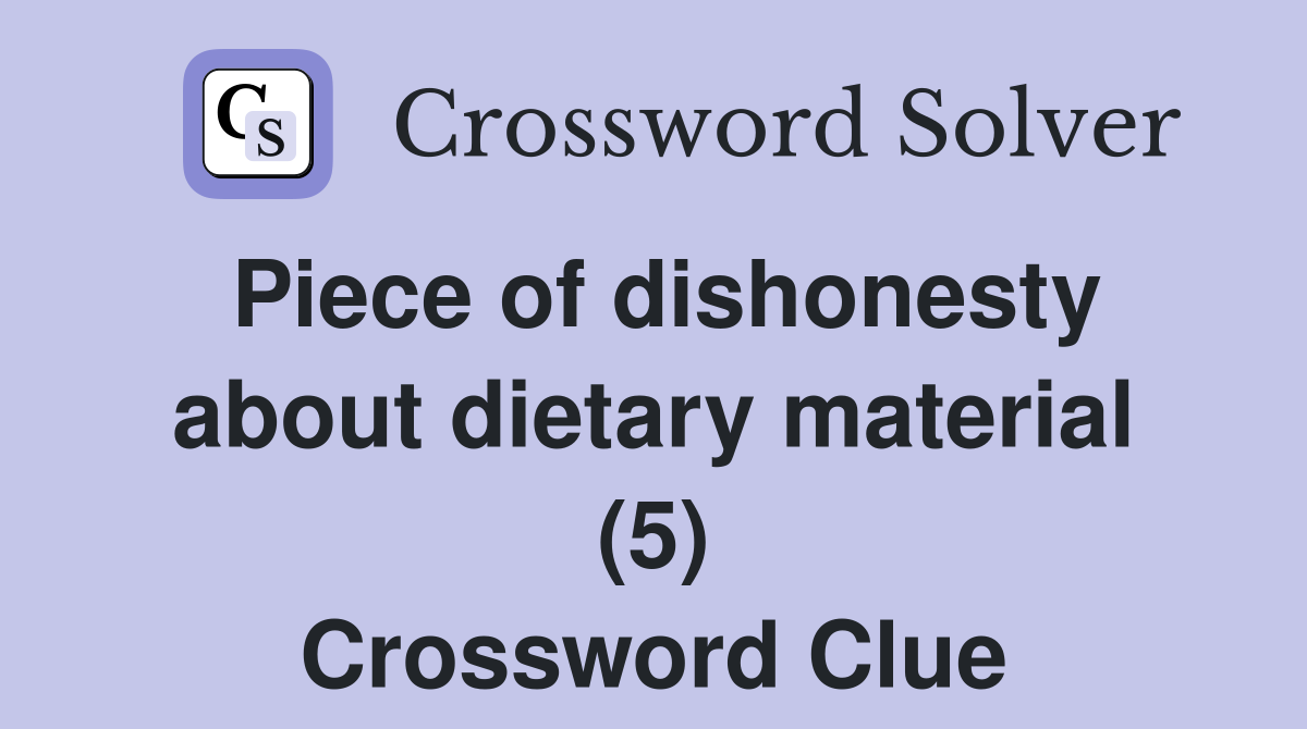 Piece of dishonesty about dietary material (5) Crossword Clue Answers