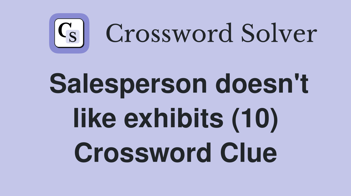 Salesperson doesn #39 t like exhibits (10) Crossword Clue Answers