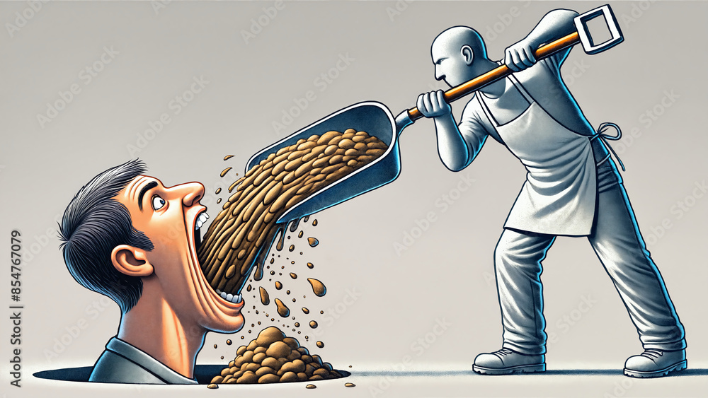 Shove it down your throat idiom representation pushing unsolicited