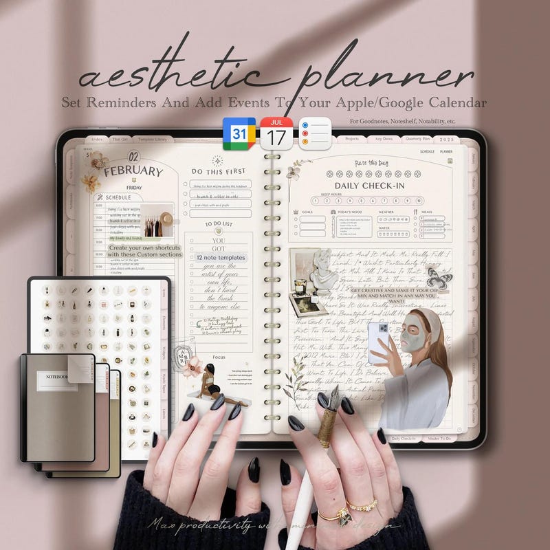 Link Digital Planner to Google Calendar Apple Calendar Reminders