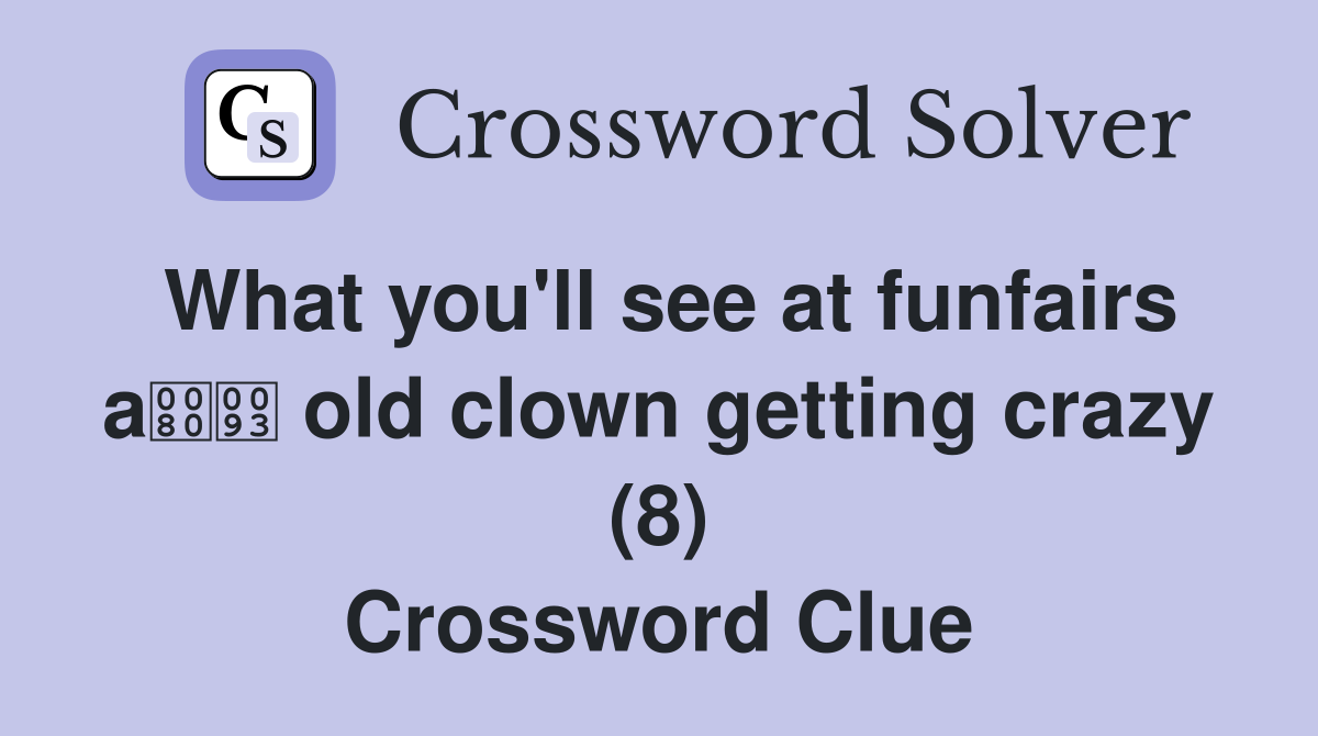 What you #39 ll see at funfairs a old clown getting crazy (8) Crossword
