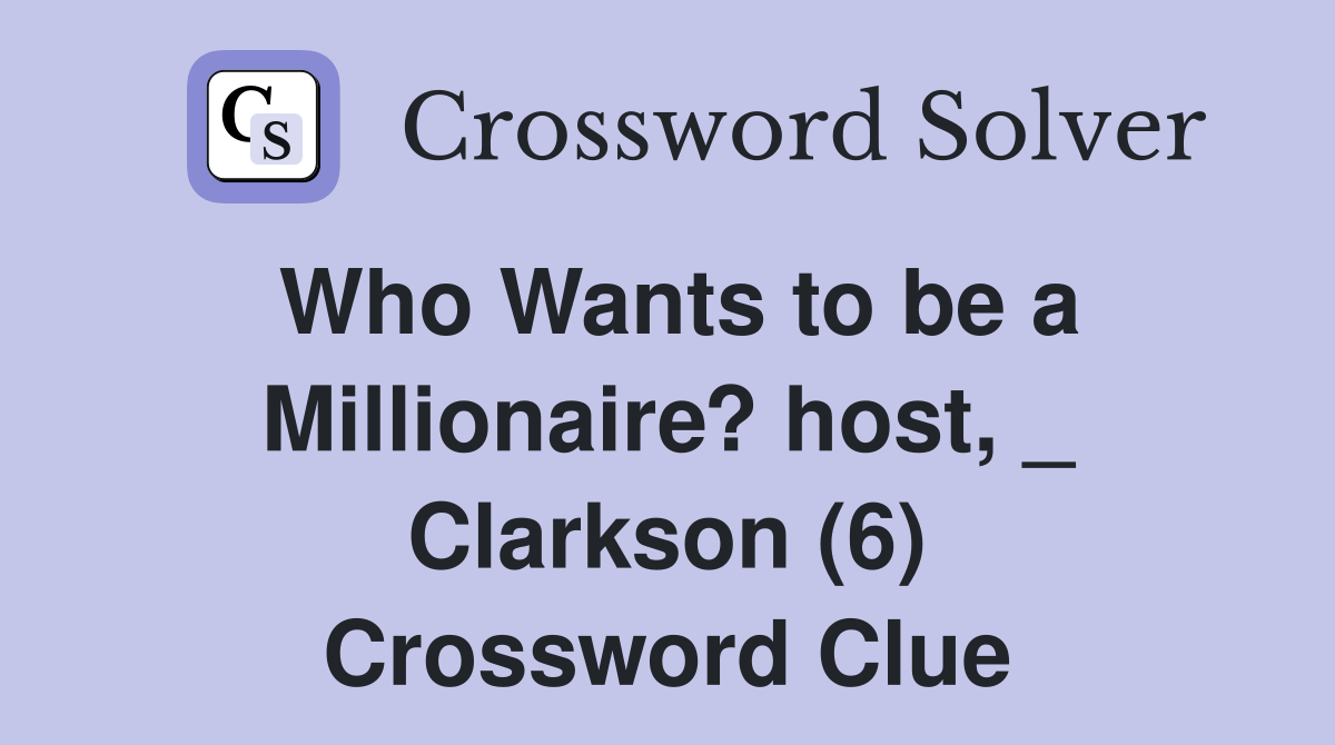Who Wants to be a Millionaire? host Clarkson (6) Crossword Clue