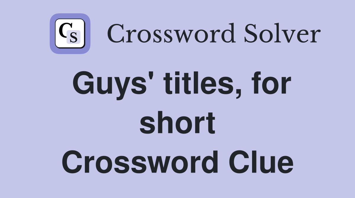 Guys #39 titles for short Crossword Clue Answers Crossword Solver