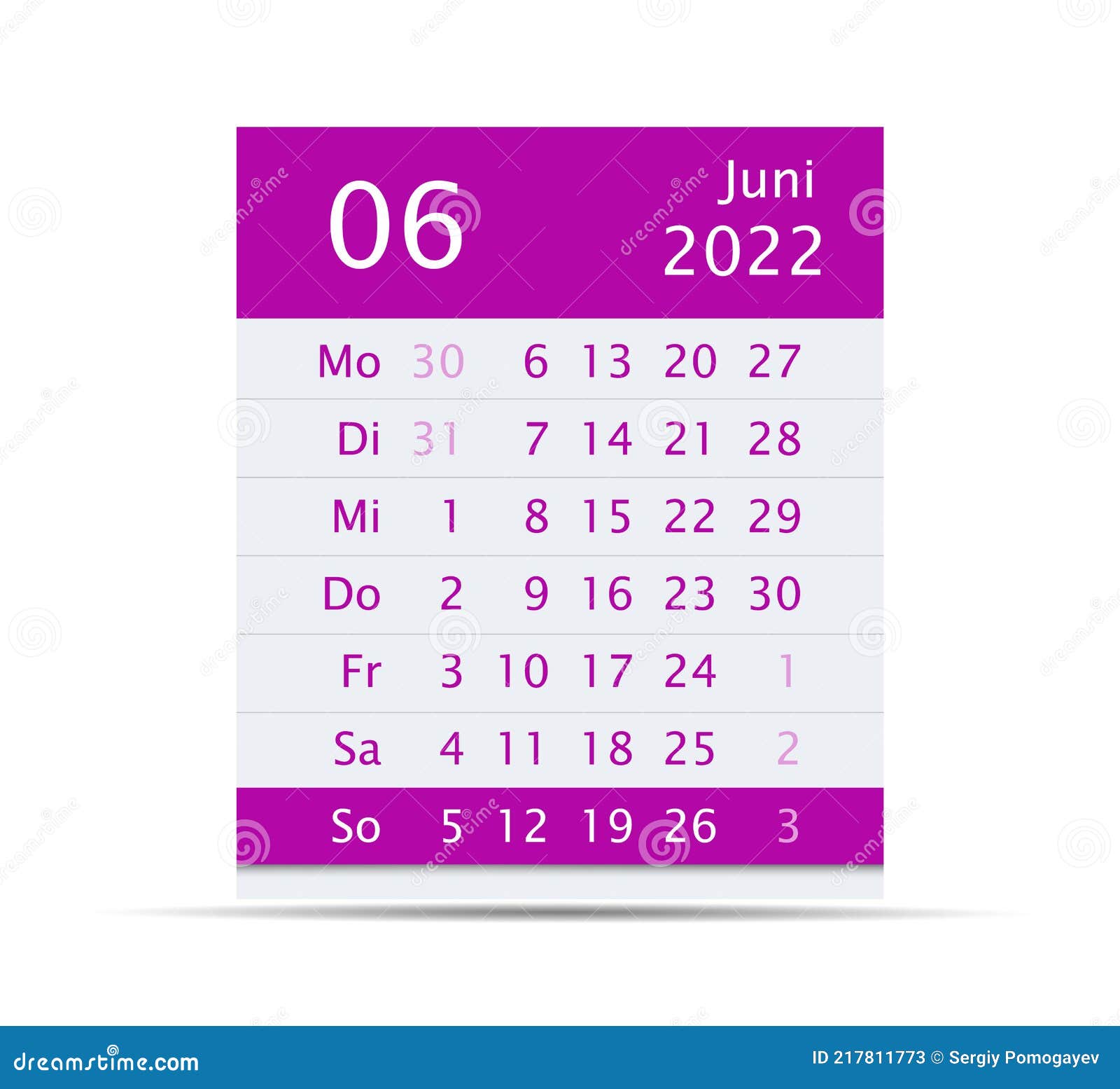 2022 June Month Calendar Germany Version Stock Vector Illustration