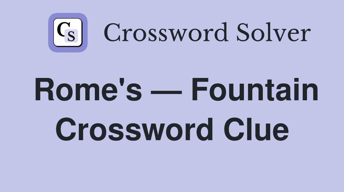 Rome #39 s Fountain Crossword Clue Answers Crossword Solver