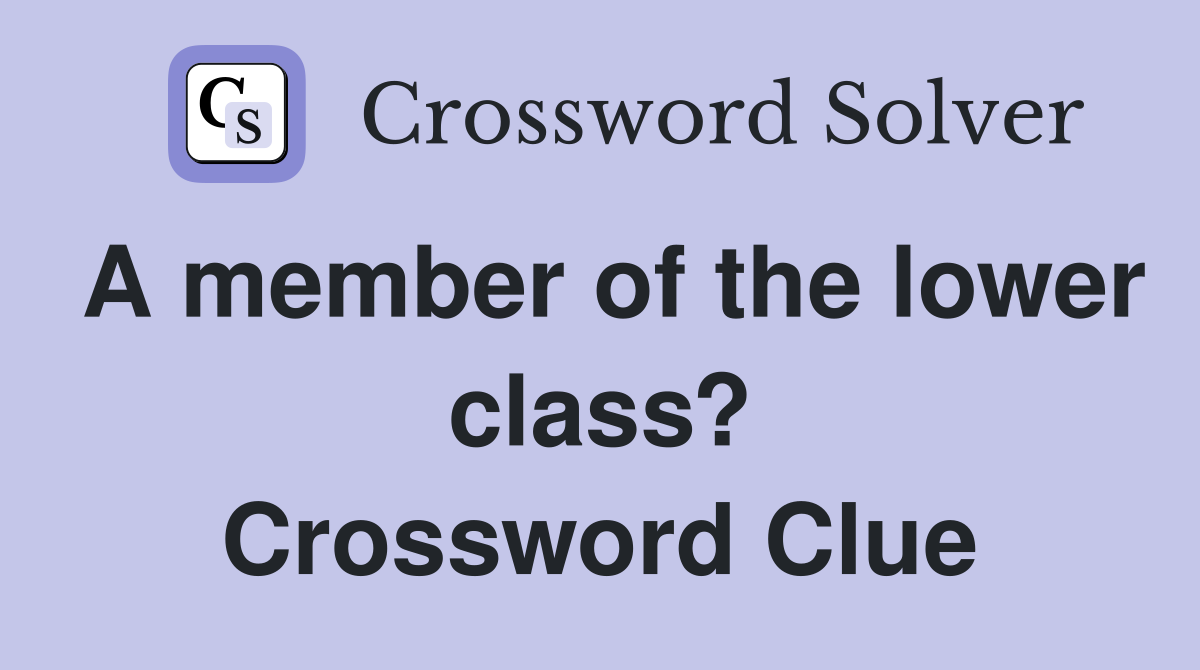 A member of the lower class? Crossword Clue Answers Crossword Solver