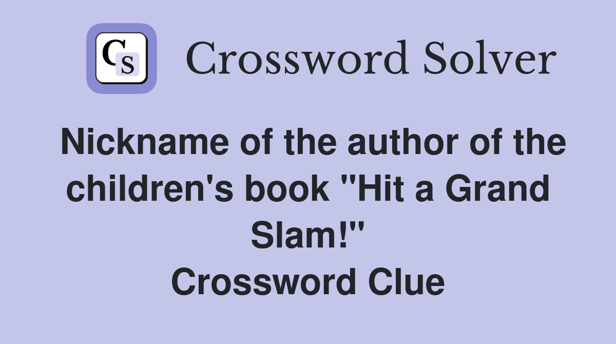 Nickname of the author of the children #39 s book quot Hit a Grand Slam