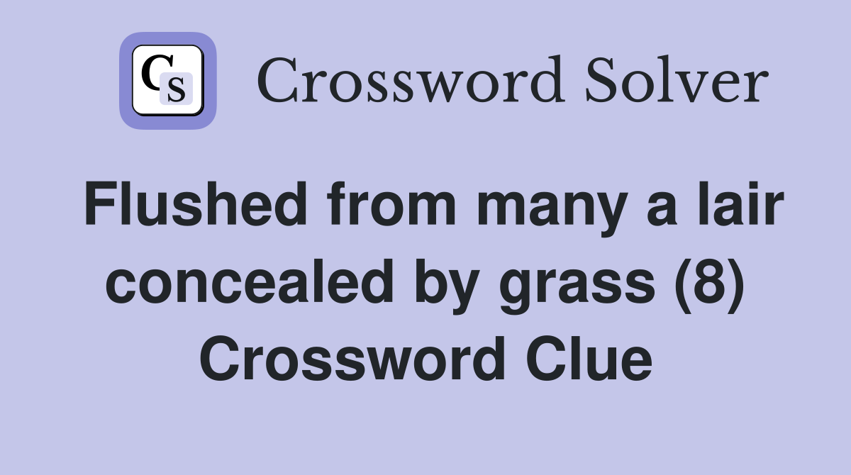 Flushed from many a lair concealed by grass (8) Crossword Clue
