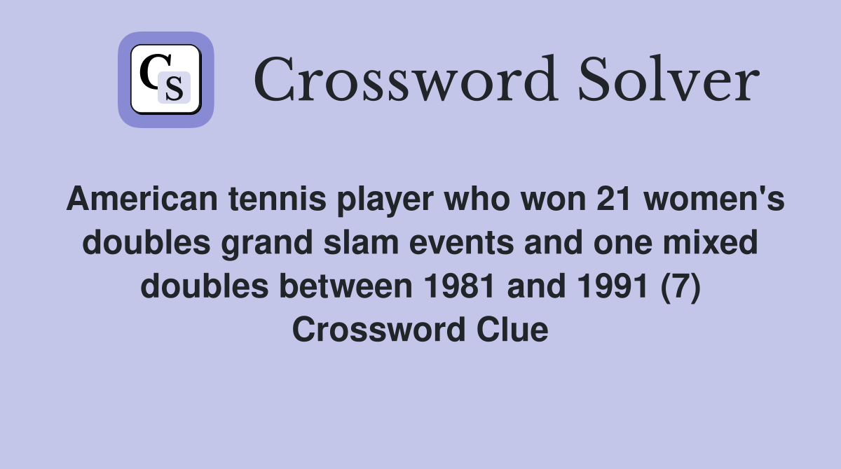 Eight time Grand Slam tournament winner from 1992 to 2003 Crossword