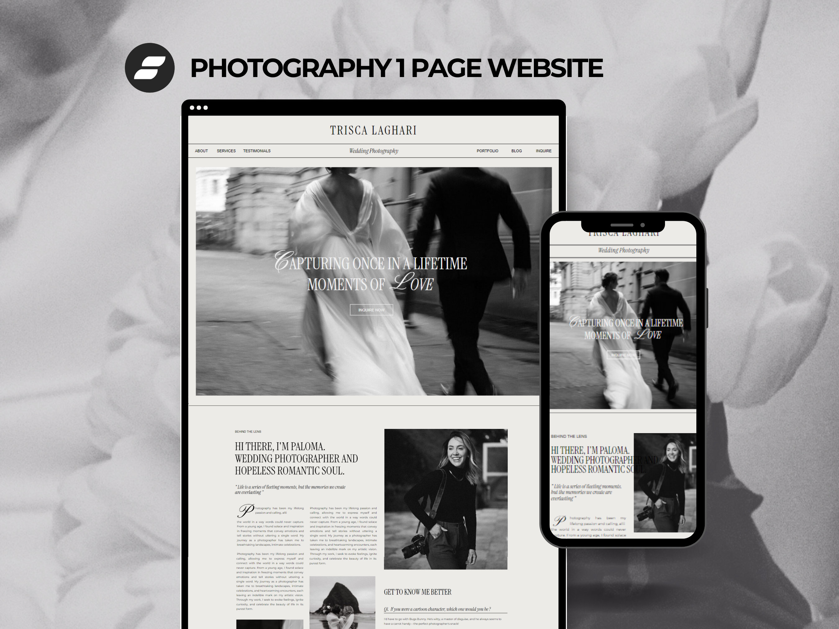 Showit Landing Page Affordable Template for Wedding Photographer One