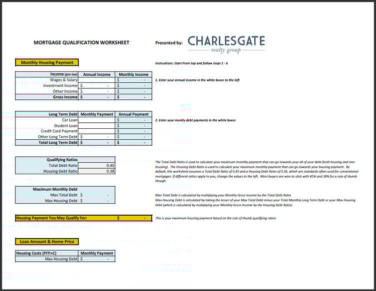 Mortgage Affordability Worksheet in Excel Google Sheets