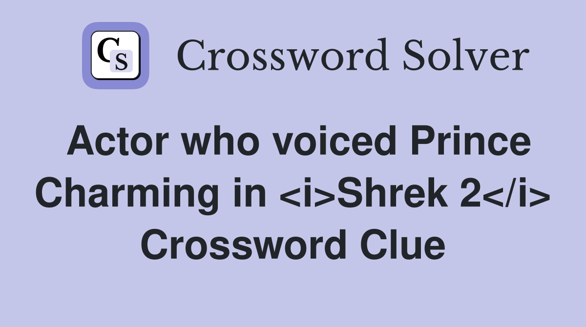 Actor who voiced Prince Charming in Shrek 2 Crossword Clue Answers