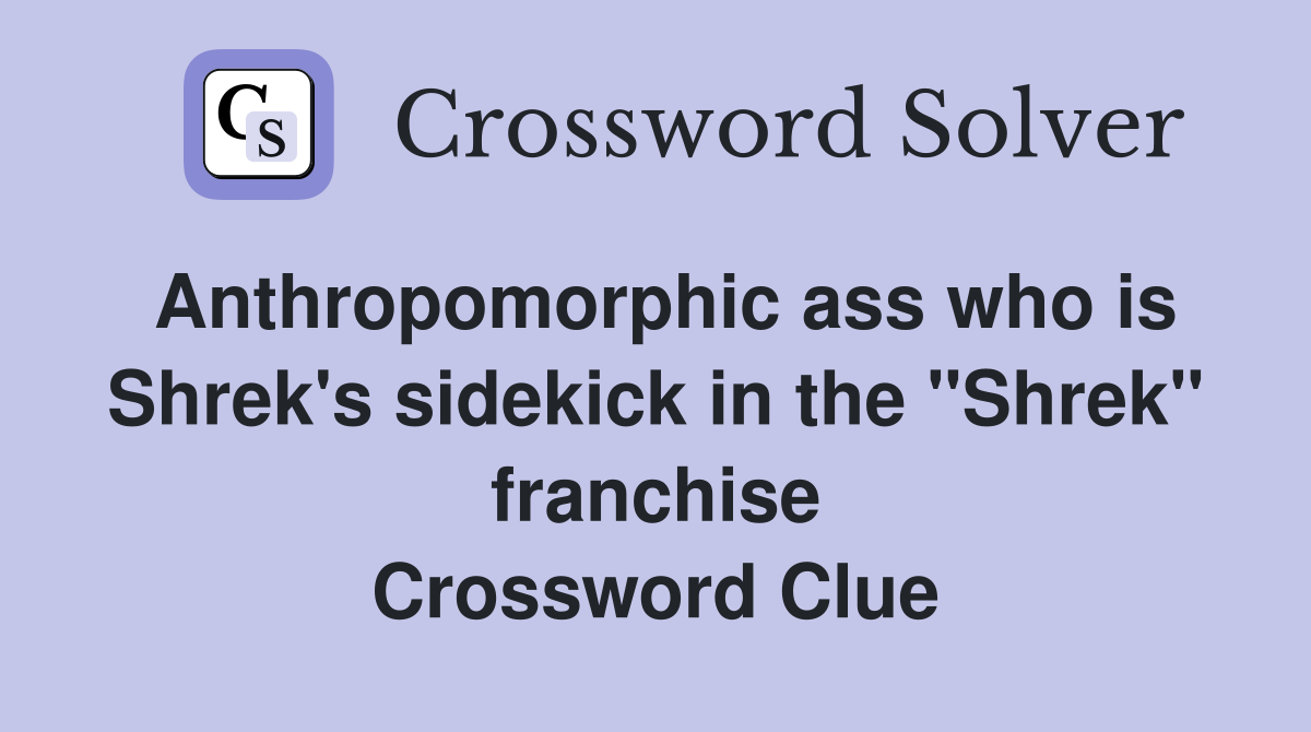 Anthropomorphicwho is Shrek #39 s sidekick in the quot Shrek quot franchise